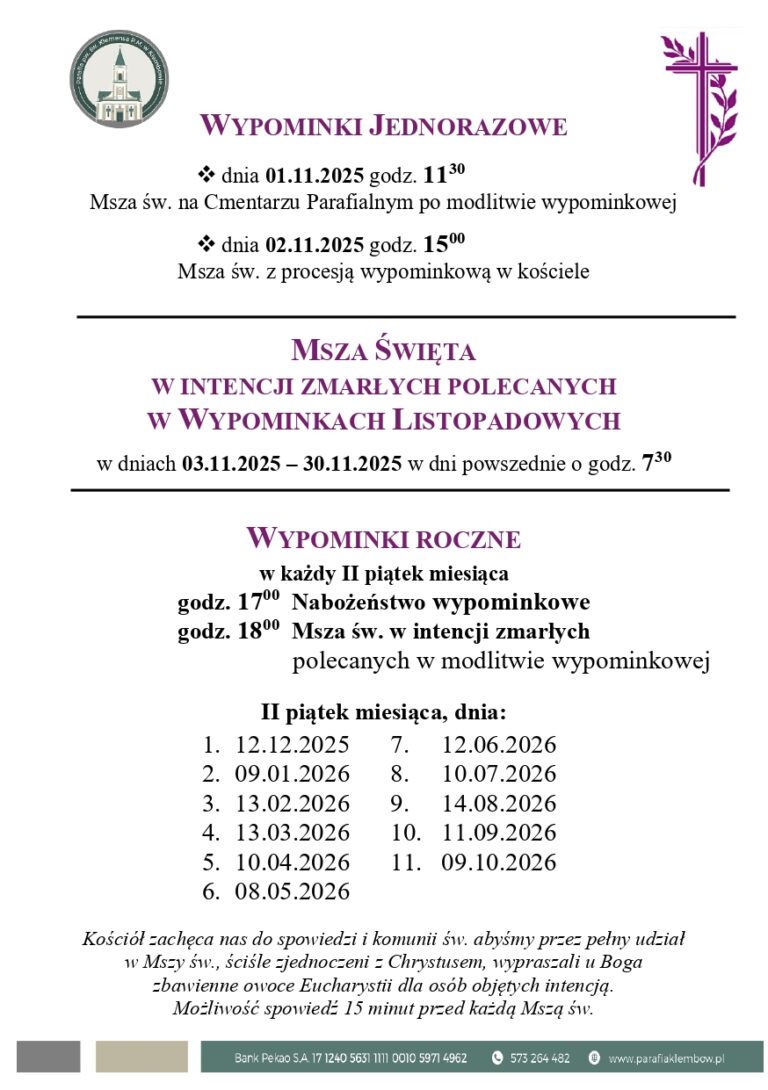 Wypominki jednorazowe 1 i 2 listopada 2025