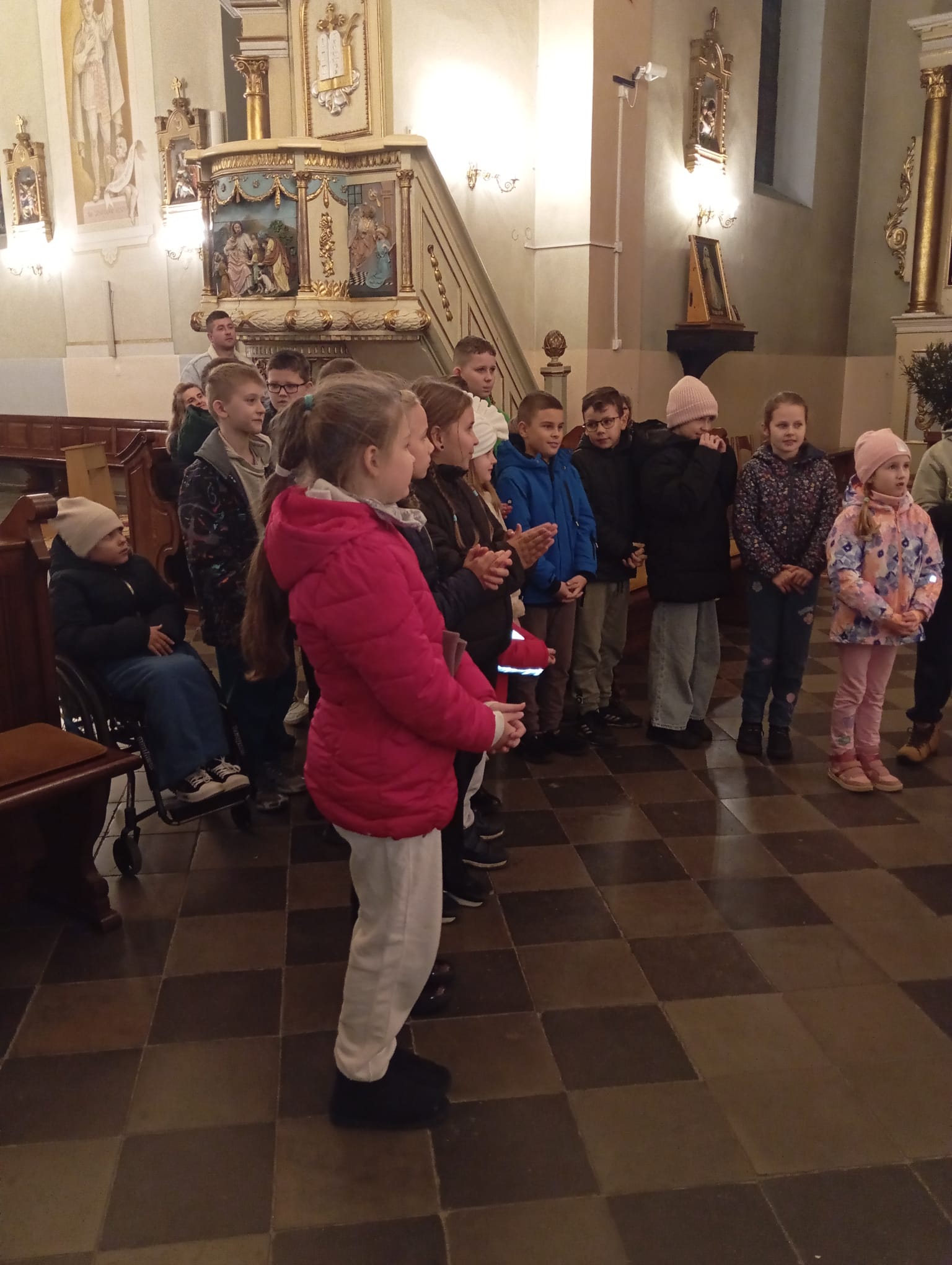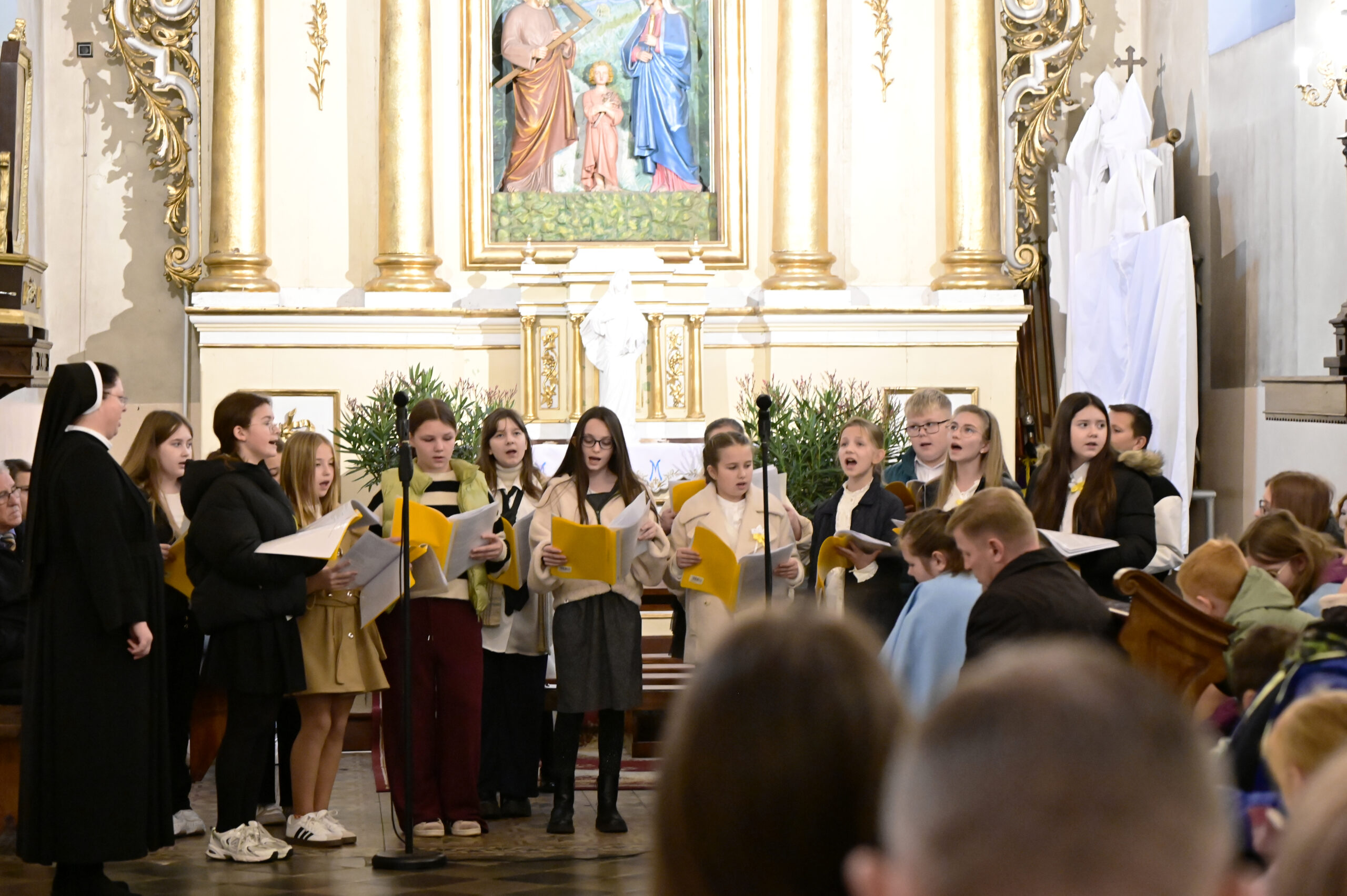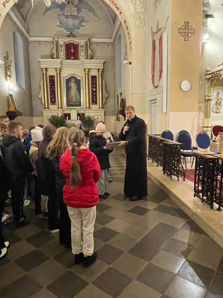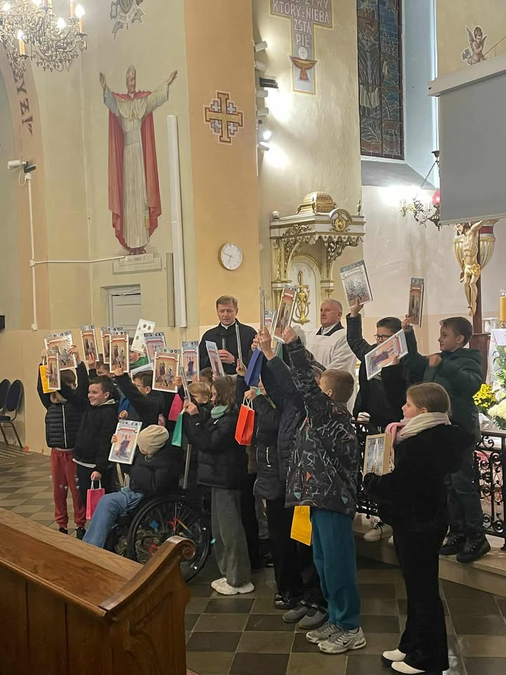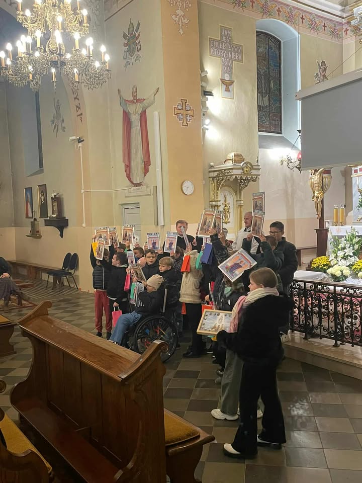 26.10.2025 po Mszy św. o godz. 10:00 odbył się piękny koncert ku czci św. Jana Pawła II w wykonaniu uczniów klasy V ze Szkoły Podstawowej w Kruszu, pod kierunkiem s. Dominiki.