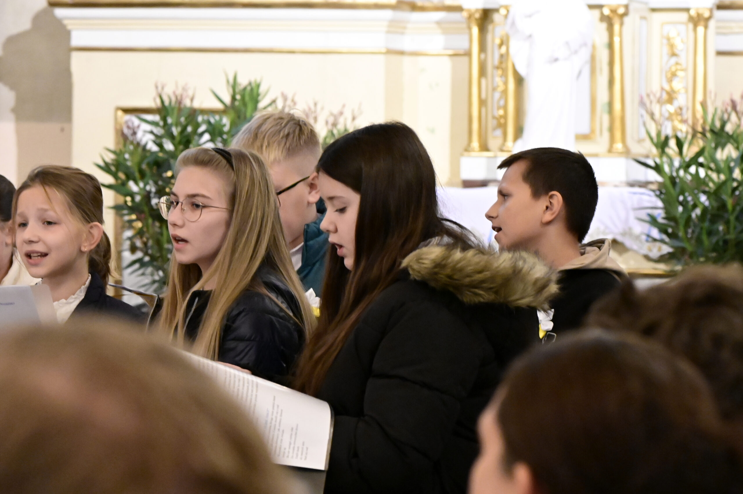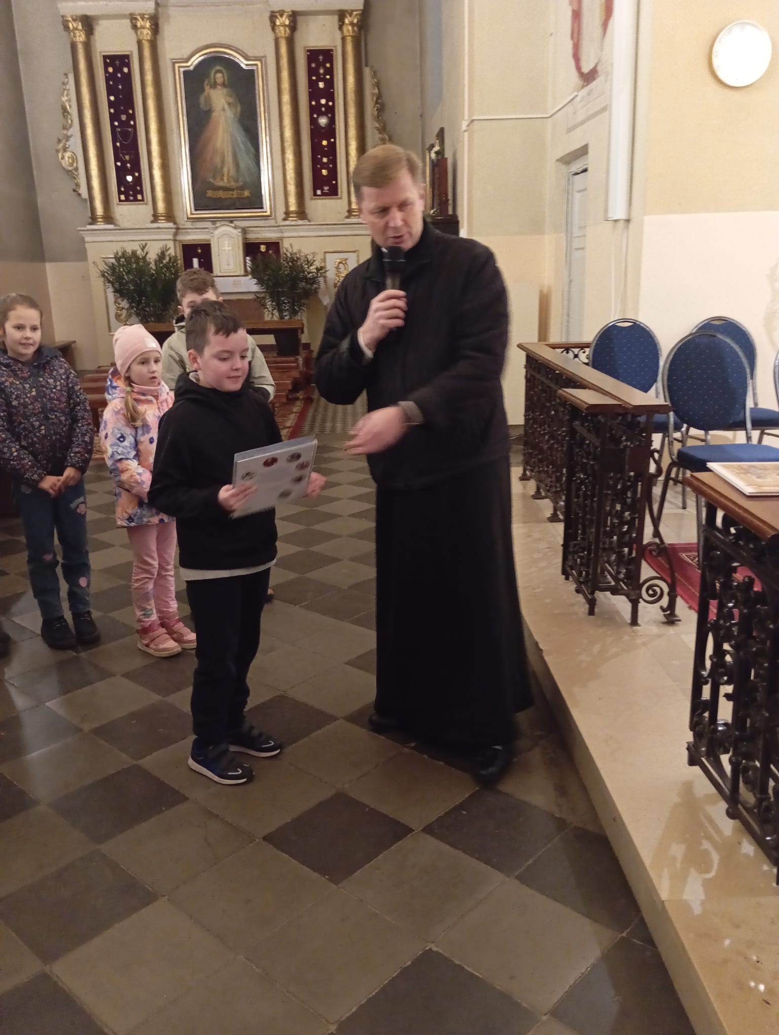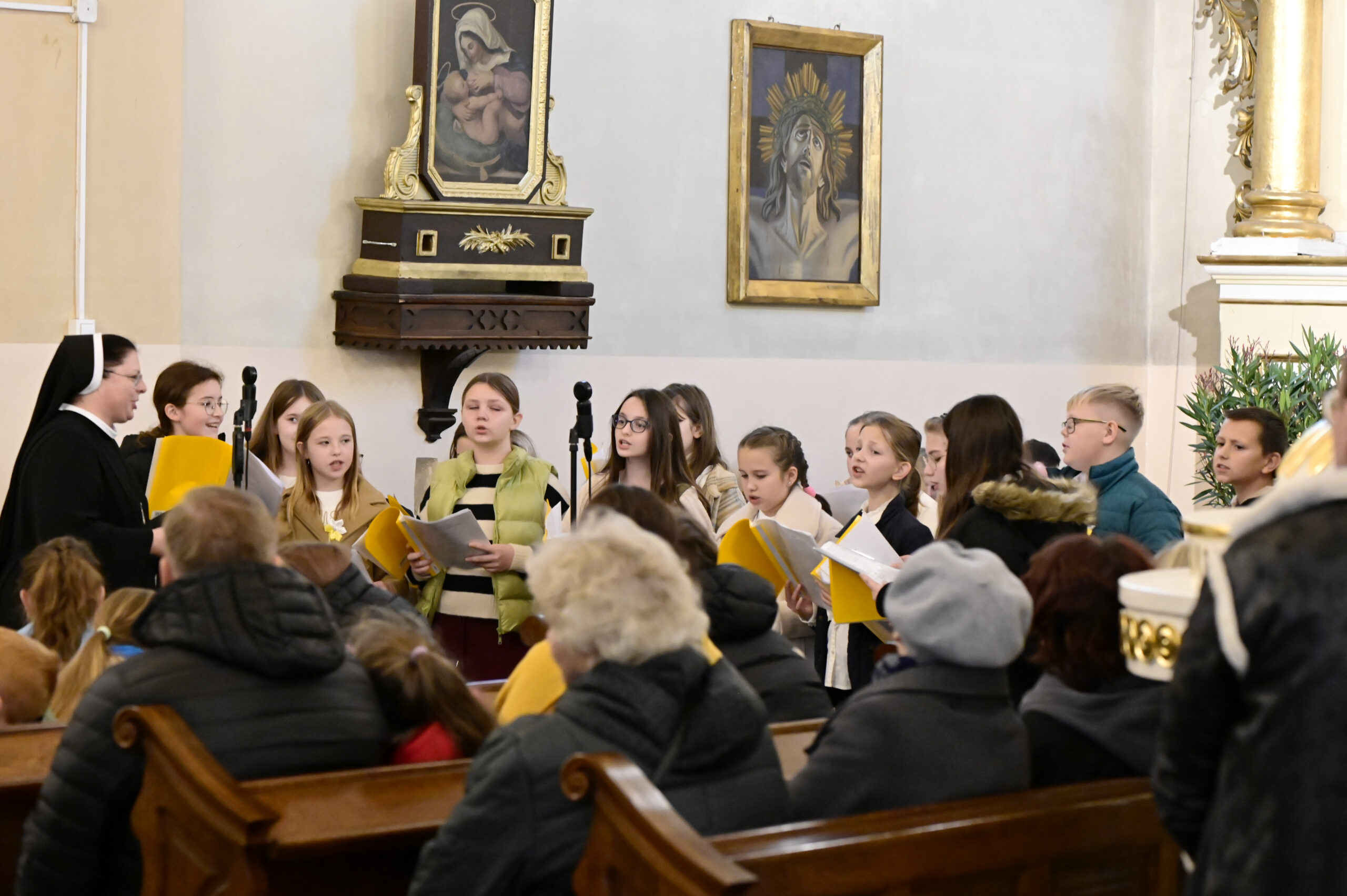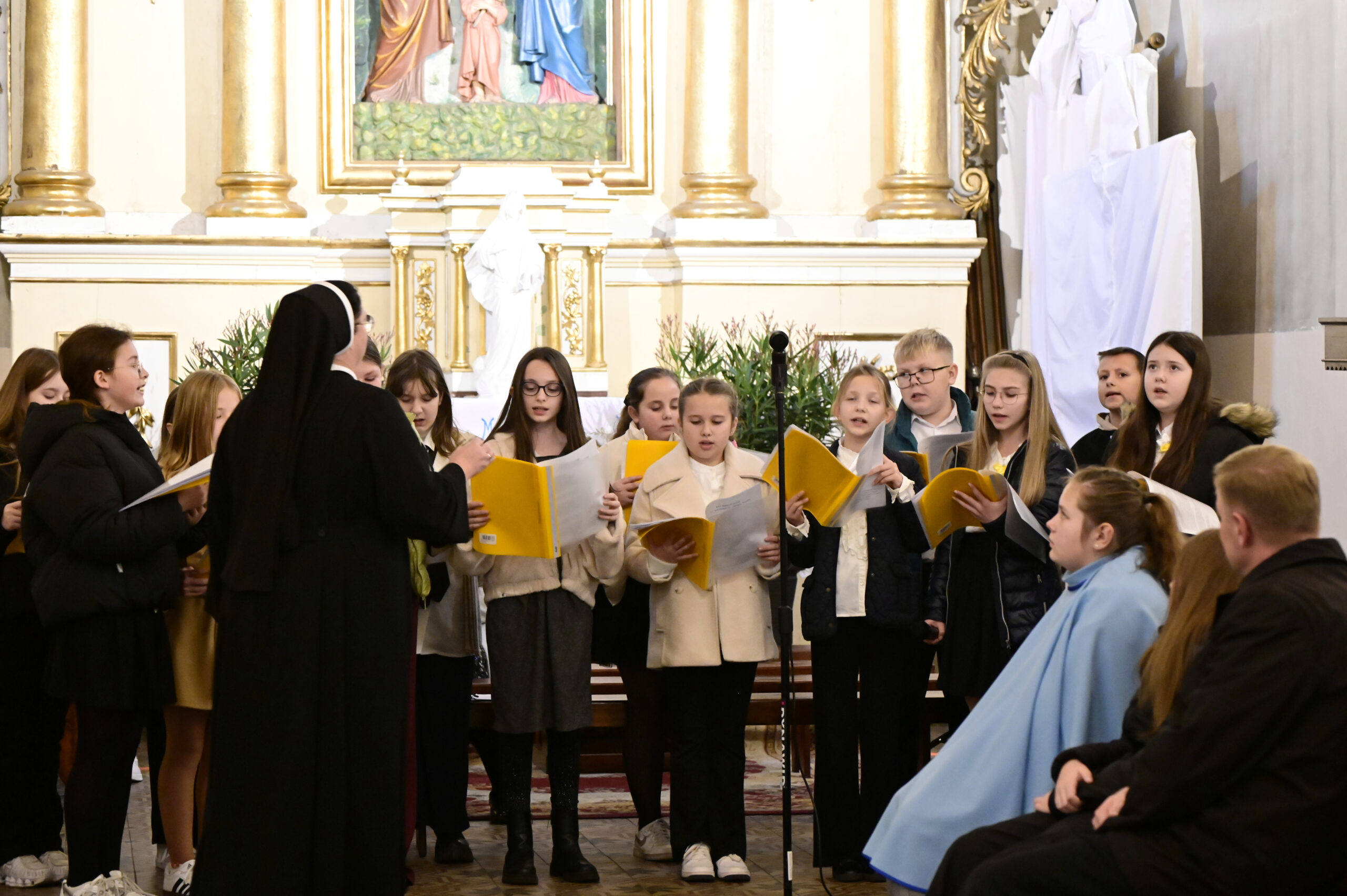 26.10.2025 po Mszy św. o godz. 10:00 odbył się piękny koncert ku czci św. Jana Pawła II w wykonaniu uczniów klasy V ze Szkoły Podstawowej w Kruszu, pod kierunkiem s. Dominiki.